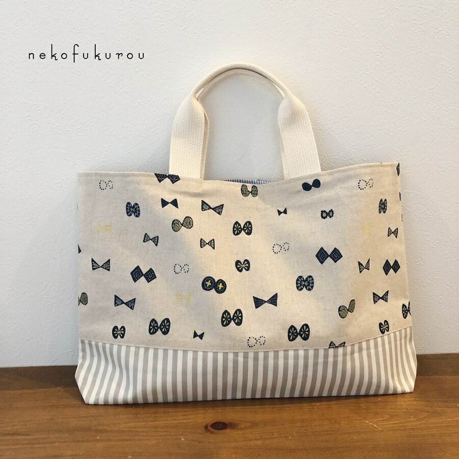 サイズレッスンバッグ たて30センチ×ヨコ40センチ マチ5センチ 持ち手長さ 35センチ 高さ約10-12センチ素材表地:綿麻オックス 裏地:綿ストライプ注意事項■素材の特性上、お洗濯やクリーニングにより多少の縮みやねじれが生じる場合もございます。