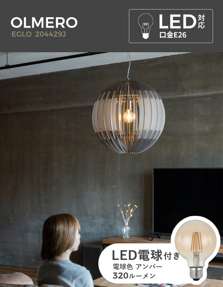 同シリーズ 40cmタイプ はこちら >> 使用電球 : 204662J EGLO LED電球 電球色 アンバー G80 E26 320ルーメン※ 付属のLED電球を使用しています。