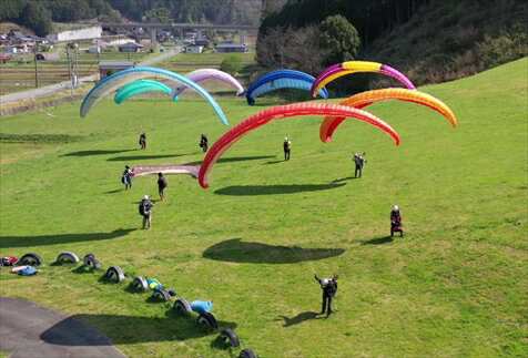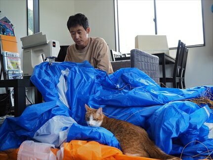 日本ハング・パラグライディング連盟インストラクターであり、アクロパイロットでもあるGo Kato/加藤豪が、丹波市のロールアウトパラグライダースクールで、廃棄予定のパラグライダーを裁断・縫製・チューニングし地上トレーニング用「ミニパラ」として生まれ変わらせる 風が強めの日でも、地上コントロールの練習ができます。