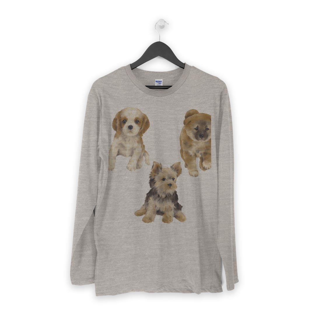ロング tシャツ メンズ 長袖 ホワイト グレー デザイン XS S M L XL 2XL Tシャツ ティーシャツ T shirt long sleeve 014619 犬 動物 アニマル