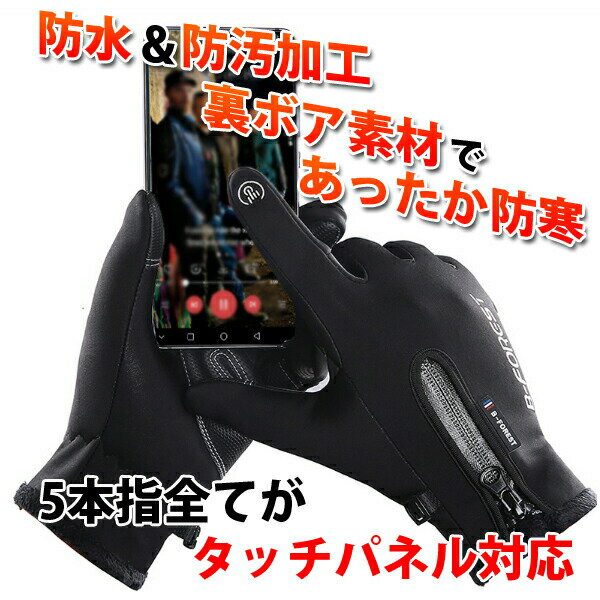 【ポイント5倍!19日20時~20日23時59まで】【即日発送】手袋 防寒 防水 防汚 自転車 バイク グローブ スマホ手袋 スマホグローブ タッチスクリーン対応 スマホ 黒 アウトドア 撥水 メンズ レディース タッチパネル 冬キャンプ 冬キャン キャンプ ソロキャン【送料無料】