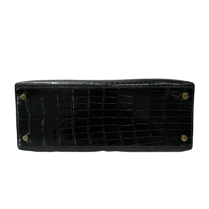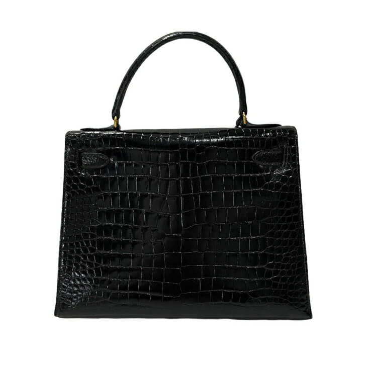 【中古】エルメス ケリー28 外縫い クロコダイル ポロサス リセ 黒 ハンドバッグ ゴールド金具 HERMES エルメス 2