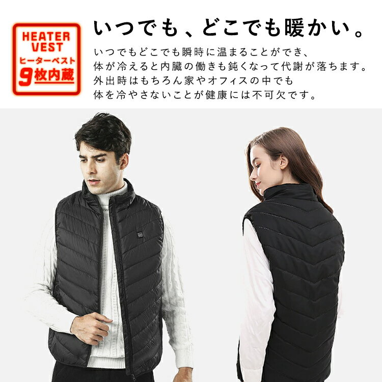 ■軽量で防寒9つのヒーターが内臓 軽薄で、通気性と保温性が良く一般的なダウンベストと重さ性能ともに遜色がなく手触り、着心地がいのが特徴です。