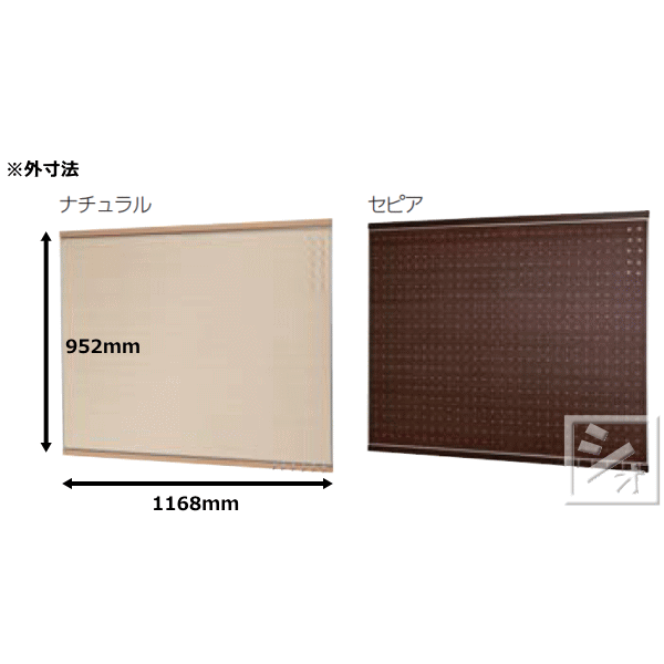 商 品 説 明 材質 本体:アルミ・スチール木目シート貼り・木質ボード フック:スチールメッキ 外寸法 幅1168×高さ952×奥行18mm 重量 5.3kg 安全荷重 ピン5kg / ネジ5kg (フック1個あたり1kgまで) カラー ナチュラル(MR4053) セピア(MR4057) 付属品 マグネット(M-5010)10個・フック6個・壁取付金具・石こうボード用ピン・木壁用ネジ 取付場所 石こうボード壁・ベニヤ壁・木壁・木桟 特長 ●お気に入りの写真や思い出を飾って楽しめます。