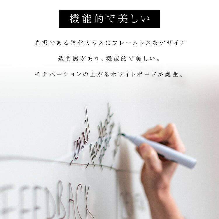 強化ガラスを採用したキズや描き後の汚れに強いホワイトボードです。