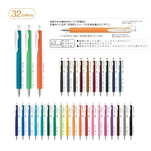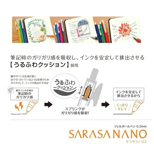 商品名ゼブラ ZEBRA サラサナノ 0.3mm 黒 青 赤 3色セット説明ペンの上部にスプリングを加えた『うるふわクッション』を採用しました。