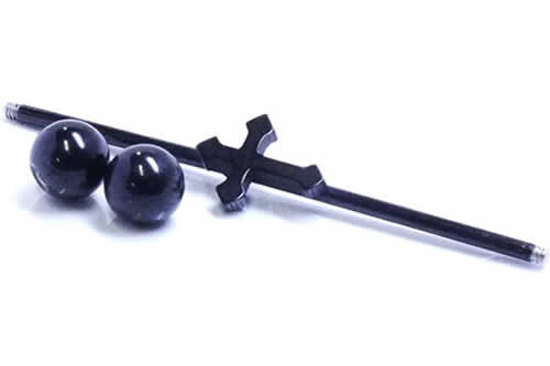 ブラックのメガバーベルに、十字架をデザインしたインダストリアル用ボディピアス。