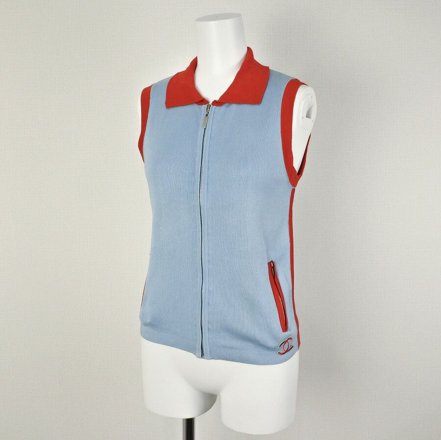 [USED/中古]CHANEL シャネル タンクトップ・ノースリーブ コットンジップアップベスト ワンポイントココマーク スカイブルー レッド 02S B2008 ジレ レッド スカイブルー コットン 38 P19525V01125 Aランク【中古】