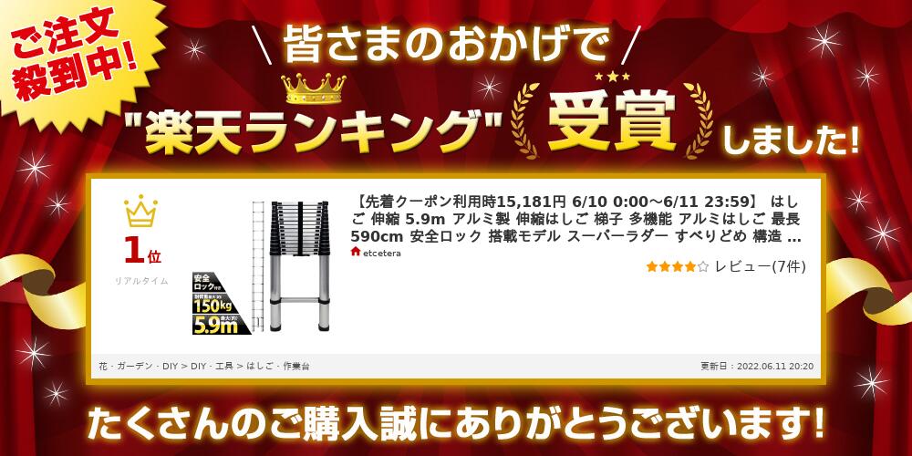 アルミ製 伸縮はしご 5.9m 安全ロック搭載 安全を実現!安全ロック搭載モデル 安心して作業できるはしごです。