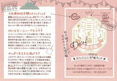 カフェインが気になる人も三毛猫珈琲の輪“猫集会”に参加して欲しい、という想いから「井戸端ブレンド」と名づけられました。
