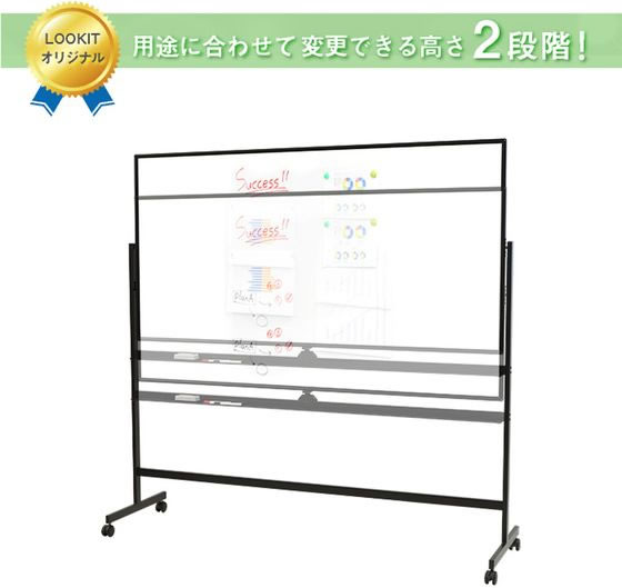 【仕様】●カラー:ブラックフレーム●サイズ:幅1880×奥行560×高さ1600または1800mm●重量:本体重量/14.0kg●仕様:板面/スチール、フレーム/アルミ、脚/スチール、キャスター/ナイロン●付属品:マーカー(黒・赤)×各1、イレイザー×1●注文単位:1台※原則、軒先(玄関先)渡しとなります。