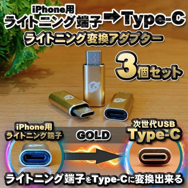 【ゴールド】x3 USB Type C ケーブル → マイクロ USB に変換する アダプター マイクロ USBを 搭載 している パソコンや スマホなどに対応