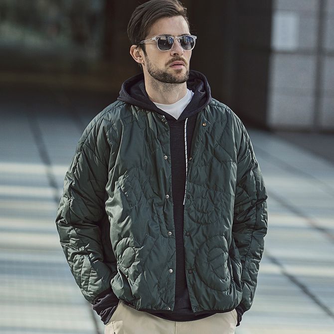 軽量ダウンに+phenixロゴでキルティングを施したジャケット。