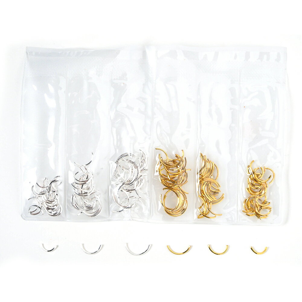 メタルスタッズ カーブ ゴールド&シルバー各3サイズセット 6.4mm/9.3mm/10.8mm ネコポスOK メール便OK ジェルネイル ネイルアート セルフネイル メタルパーツ