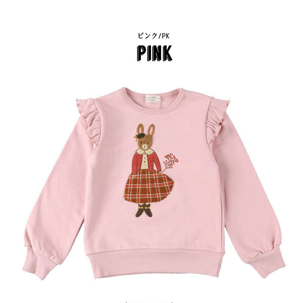 【サイズ】 50cm 60cm 70cm 80cm 90cm 95cm 100cm 110cm 120cm 130cm 140cm 150cm 160cm レディース ママ 【商品カテゴリ】 子供服 キッズ 長袖 秋服 冬服 春秋冬 あったか 着心地 柔らか 子供服 可愛い ウエア 【商品カラー】 ブラック ホワイト ブルー 【イベントカテゴリ】 キャンプ 山登り ハイキング 旅行 誕生日 お祝い プレゼント ギフトセットできます 山の学習 海の学習 林間学校 学校行事 式典【la poche biscuit/ラ・ポシェ・ビスキュイ】肩フリル 女の子 うさぎ トレーナー スカートを履いた女の子のうさぎさんがレトロで可愛いトレーナーです+。