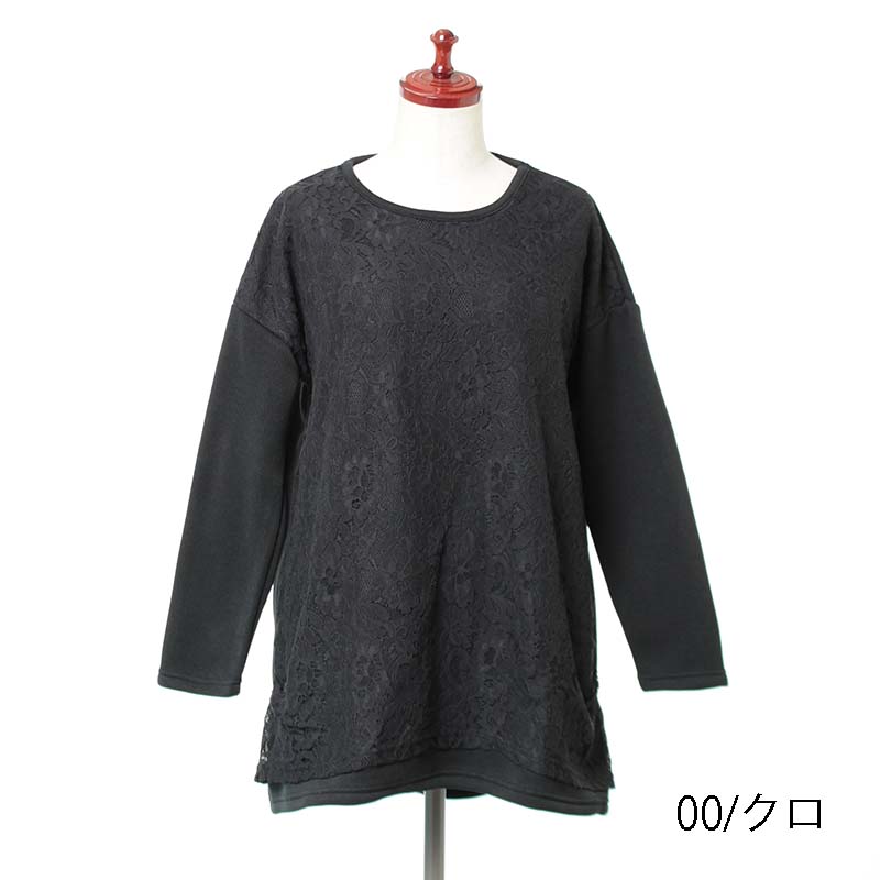 前見頃にレースをつけた大人可愛いデザインのチュニックです。