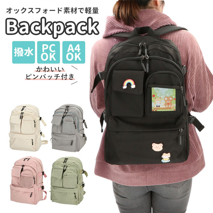 リュック 通学 女子 韓国 大容量 定番 レディース バックパック リュックサック おしゃれ 可愛い B4 軽量 軽い 高校生 中学生 シンプル カジュアル くすみカラー 黒 ブラック グリーン ベージュ ピンク ブルー 多収納 ポケット 旅行 おでかけ レディースバッグ
